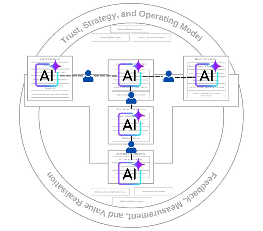 I hope this series has provided a useful lens for leaders and practitioners seeking to move beyond fragmented personalisation and toward more deliberate, trustworthy, and sustainable decisioning practices. As customer engagement continues to evolve under the influence of AI and automation, the need for clear decisioning architectures and human stewardship will only become more pronounced. It is in that context that this blueprint is offered - as a starting point for more disciplined thinking and more coherent action.