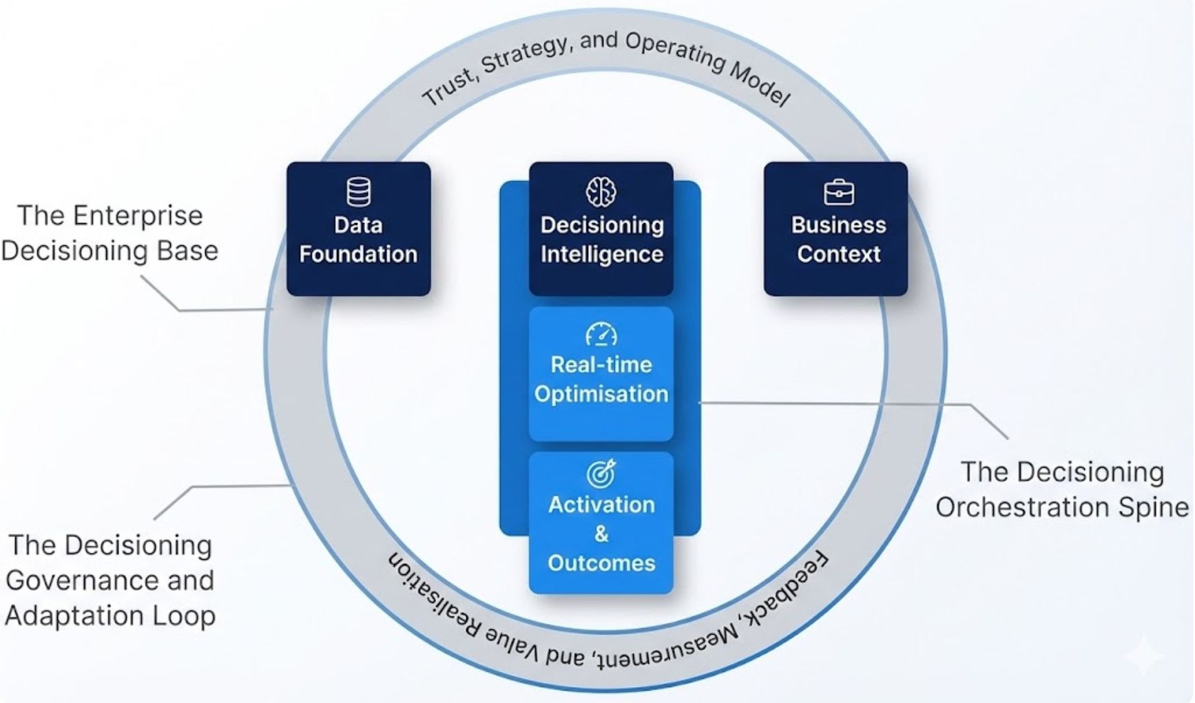 This is precisely why, in the Customer Decisioning Blueprint, Decision Intelligence sits at the centre but not stands alone.